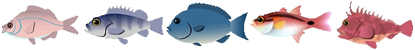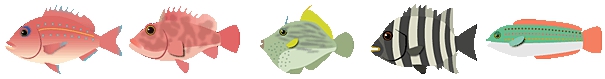 ウミタナゴ、メバル、メジナ、ネンブツダイ、ハオコゼ、マダイ、カサゴ、カワハギ、ベラ、サンバソウ・フグなど、様々な魚が狙えます。