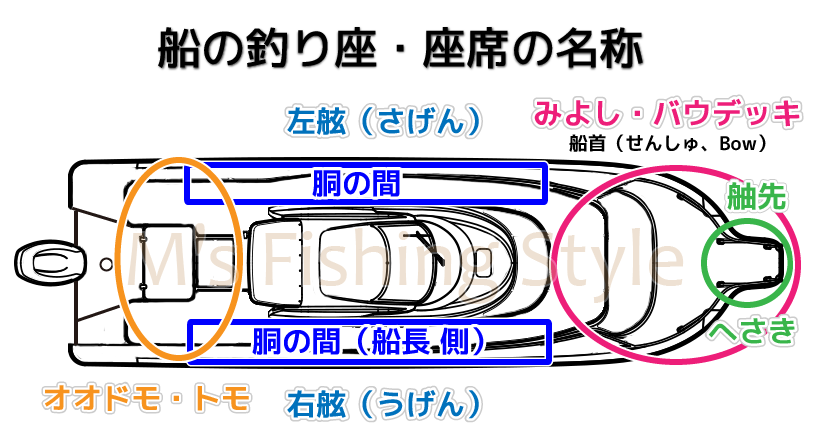 朝5時出船で、前の日の晩(21時頃)から来ている人も見たことあります^^; それだけ人気がある(釣れる可能生が高い)場所なので、言葉位は覚えておきましょう。 下記の図をご覧ください。