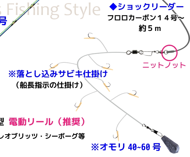 関西~淡路・加太エリアのタックルになります。この海域では「ショックリーダーの取り付け」を各船長さんより推奨されております。