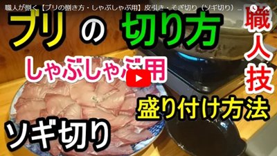 デカイブリをサク取りし、しゃぶしゃぶ用に薄く切り分けていきます。