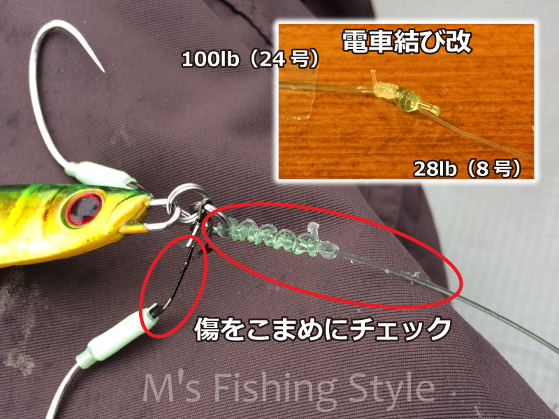 僕自身は、今回 100lb の太いリーダーをセットしていたので、ジグのロストはゼロでしたが、掛かりが悪かった様に感じます^^; 50lb程度で良かったかも。